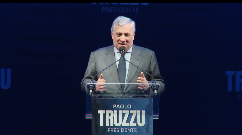 "Stiamo lavorando per risolvere i problemi della Sardegna", ha detto intervenendo sul palco il leader di Forza Italia Antonio Tajani.