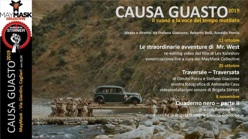 Venerdì 11 ottobre Stefano Giaccone, insieme a Roberto Belli e Arnaldo Pontis, musicisti tra i più attivi nella scena ambient-industrial sarda tra performances poetiche, videoinstallazioni, reading, multimedia, video e scenari sonori elettronici (Machina Amniotica, Brigata Stirner), inaugureranno il primo appuntamento con la sonorizzazione live di “Le straordinarie avventure di Mr. West”, un film di Lev Kuleshov, pioniere e maestro del cinema sovietico (ebbe tra i suoi discepoli anche Sergej Ėjzenštejn). Un film satirico, fortemente ironico nei confronti di giudizi stereotipati americani e borghesi in generale sulla giovane Rivoluzione. “Trattandosi di Arnaldo Pontis, Roberto Belli (Machina Amniotica, Brigata Stirner) e Stefano Giaccone alias “Kina, Franti e altri disastri” la neo-sonorizzazione della pellicola andrà a valorizzare la dimensione farsesca e “difuorista” (citando Demetrio Stratos) del film stesso”. Aspettarsi di tutto è il minimo. Sonorizzazione a cura del MayMask Collective. Contributo per ogni serata: 5,00 Euro.