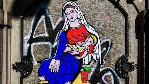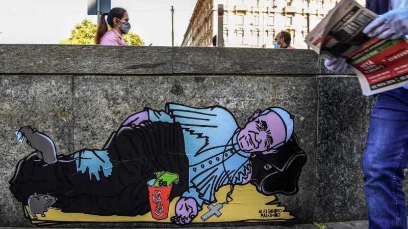 MILANO. Papa Francesco e la Madonna con il bambino poveri tra i poveri mentre il bicchiere di Coca Cola, da sempre simbolo del capitalismo e del consumo di massa, viene trasformato in un contenitore per chiedere la carità. Si tratta di una serie di opere che prendono il nome di "Caritas" realizzate da Alexsandro Palombo, artista pop contemporaneo. I murales sono comparsi in alcune zone di Milano e hanno l'obiettivo di alzare il volume sull'aggravarsi della povertà ai tempi del coronavirus.