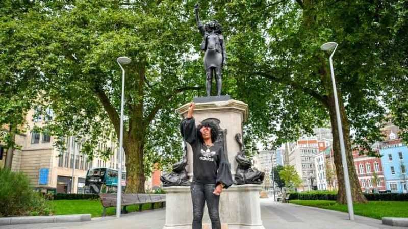 È la prima volta che il movimento Black Lives Matter erige una propria icona, dopo che dalla morte di George Floyd, avvenuta il 25 maggio scorso a Minneapolis, sono state abbattute sculture ritenute simbolo di schiavismo e oppressione. Così sguardo e pugno destro in alto sul piedistallo che per oltre un secolo ha ospitato il bronzo, ormai per molti troppo pesante, del commerciante di Bristol.