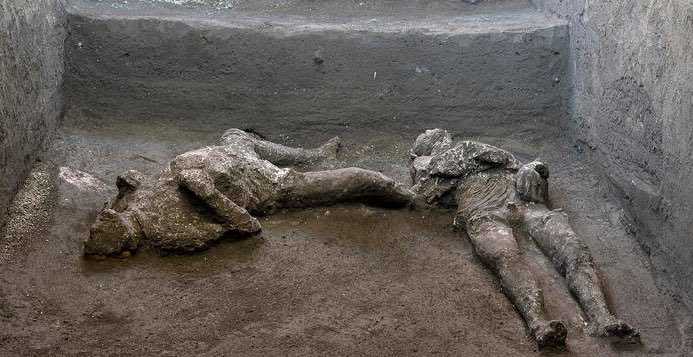 POMPEI. Incredibile scoperta a Pompei. Dagli scavi in corso nella grande villa suburbana a Civita Giuliana sono emersi i corpi integri di due fuggiaschi: un quarantenne, signore di rango, avvolto in un mantello di lana e il suo giovane schiavo in tunica. Lo scavo, condotto in sinergia con la Procura di Torre Annunziata, è nato per fermare gli scavi clandestini dei tombaroli che hanno lasciato ampie tracce della loro attività.