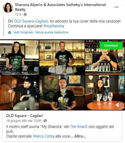 I dipendenti del pub di Cagliari, sotto la regia di Stefano Cortis, ne hanno fatto una cover, utilizzando bicchieri e tutti gli strumenti da lavoro del locale. Alla voce c'è Marco Cotza. L'esibizione è stata travasata in un video, pubblicato sulla pagina Facebook del locale. Qualche tag e il gioco è fatto: Sharona, quella vera, che adesso fa l'agente immobiliare, lo ha rilanciato. Con tanti complimenti.