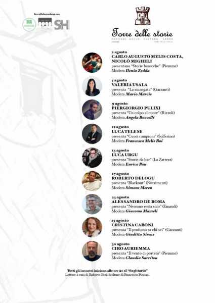TORRE DELLE STELLE. Prende il via ad agosto la seconda edizione di “Torre delle storie”. Nove incontri, nove libri, nove fra i più grandi autori del panorama sardo saranno ospiti della rassegna estiva a Torre delle Stelle. Il fondatore e direttore artistico, Matteo Porru, si dice entusiasta della riuscita del progetto: “L’anno scorso, Torre delle storie era una scommessa per tutti: un festival nato in piena pandemia che, un anno dopo, è una piacevole conferma che mette radici per un progetto a lungo, lunghissimo termine”. Soddisfatto anche Oscar Meloni, il proprietario del Sagittario, il locale che ospita gli incontri: “La collaborazione con Matteo ci ha dato modo di ridare una vita culturale a questo meraviglioso paese, che nel periodo estivo si conferma sempre una delle località di vacanza preferite dai sardi e non solo. La lettura, e la letteratura, in questo senso, sono ottime compagne di viaggio.”