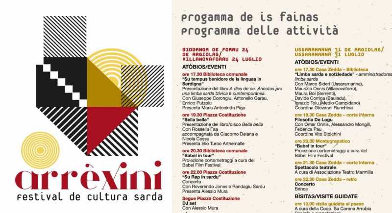 Il programma della prima edizione. Un calendario diviso in due comuni e quattro giornate, ricco di stimoli culturali diversi, ambizioso nel suo aver voluto raccogliere alcune tra le iniziative culturali più interessanti del panorama isolano, spaziando dalla musica alla letteratura, dal teatro ai convegni. Per ciascuna giornata del festival è previsto infatti un dibattito: il primo – a Villanovaforru, nella sala della Biblioteca comunale – “Su tempus benidore de is lìnguas in Sardigna” accompagnato dalla presentazione del libro A dies de oe. Annotos pro una limba sarda tzìvica e cuntemporànea. Con Giuseppe Corongiu, Antonello Garau, Enrico Putzolu e Giusy Fanti. Il secondo, il 31 luglio, sul tema “S'istòria de sa Sardigna” con Isabella Tore, Manuela Ennas, Annarosa Corda e Maria Barca.
