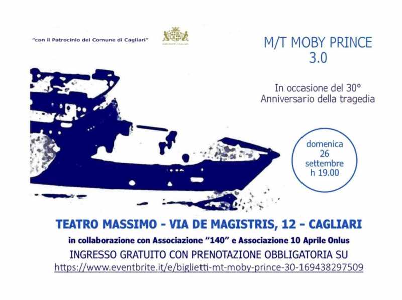 Lo spettacolo, che è stato riadattato in occasione del trentesimo anniversario della tragedia, sarà preceduto dai saluti dell'Assessora alla Cultura del Comune di Cagliari, Maria Dolores Picciau e dal Presidente dell'Associazione 10 Aprile – Familiari Vittime Moby Prince Onlus, Luchino Chessa. L'ingresso, con prenotazione obbligatoria, sarà gratuito. Green Pass necessario.