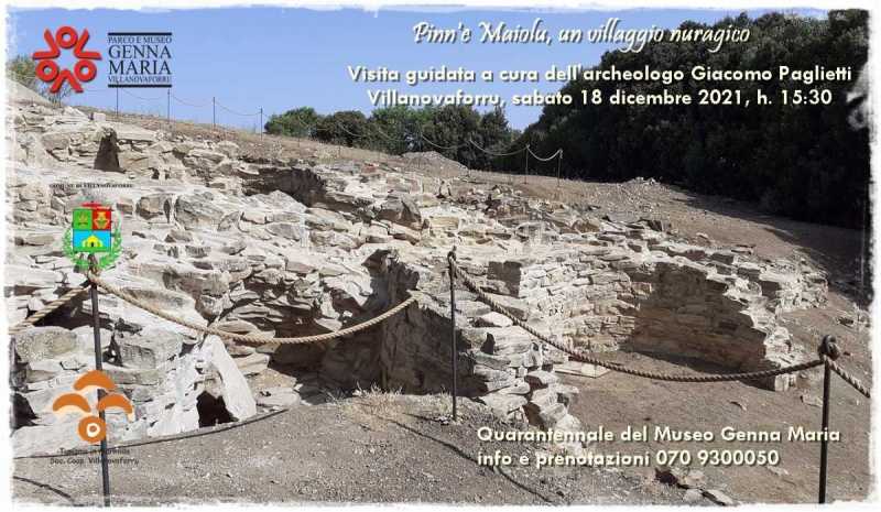 Il primo appuntamento sarà dedicato alla scoperta del villaggio nuragico di Pinn'e Maiolu, oggetto di una recente campagna di scavo che ha portato alla luce diversi ambienti d'uso domestico, associati a un apparato di canalette di regimentazione dell'acqua. Guida d'eccezione sarà il direttore del Parco e Museo Genna Maria, l'archeologo Giacomo Paglietti, che ha condotto gli ultimi scavi e che illustrerà il sito, sul quale si è fondato l'attuale paese di Villanovaforru.