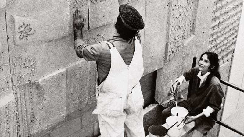 Lungo 23 metri e alto 5, il monumentale fregio semiastratto, eseguito con la tecnica del sand casting (scultura in gesso da una matrice di sabbia), era l’elemento centrale di un’installazione che simboleggiava il cielo, il mare e la spiaggia mediterranei. Dopo la chiusura del negozio Olivetti nel 1969, fu ricollocato nel 1973 nello Science Center dell’Università di Harvard, per volontà dell’architetto Josep Lluís Sert.