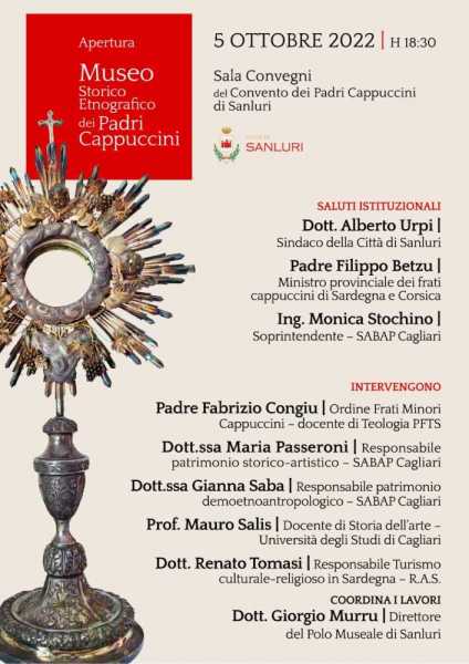 SANLURI. A Sanluri è tutto pronto per la cerimonia di apertura del Museo Storico Etnografico dei Padri Cappuccini. L'inaugurazione è prevista per il 5 ottobre alle 18.30: il Polo Museale Sanlurese, costituito dal Castello con le sue suggestive collezioni e dal Museo del Pane con il suo percorso storico e sensoriale, si arricchisce così di un’altra prestigiosa sede espositiva, che rafforza la proposta culturale della città di Sanluri e ne conferma la visione strategica di valorizzazione e promozione turistica del territorio.