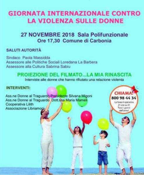 CARBONIA. Continua la lunga serie di convegni e incontri pubblici organizzati dall’amministrazione comunale su temi a sfondo sociale: dal bullismo al cyberbullismo, dai fenomeni di devianza giovanile alla comunità educante e alla genitorialità responsabile, dalla tutela dei diritti dell’infanzia e dell’adolescenza fino alla lotta contro la violenza e le discriminazioni di genere. E proprio su quest’ultimo fronte martedì 27 Novembre nella sala polifunzionale di piazza Roma, alle ore 17.30, si svolgerà un incontro pubblico che si inscrive nell’ambito delle celebrazioni della Giornata Internazionale contro la violenza sulle donne. Una ricorrenza – istituita dall’Assemblea generale delle Nazioni Unite nel 1999 – che si svolge il 25 Novembre di ogni anno.