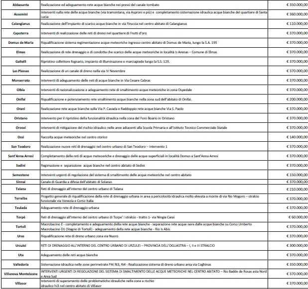 CAGLIARI. Al via il programma di finanziamenti che permette ai comuni di effettuare interventi sulle reti di drenaggio urbano, dando priorità alle aree ad elevato rischio idraulico: ieri la Giunta ha approvato il programma di spesa di 10 milioni di euro stanziati per il triennio 2018/2021, che finanziano 31 interventi in altrettanti comuni della Sardegna. Lo stanziamento risponde alle criticità manifestate dagli enti locali, soprattutto in occasione delle recenti intense precipitazioni, che hanno messo in evidenza l’importanza di avere delle idonee reti di drenaggio in ambito urbano, al fine di garantire adeguate condizioni di sicurezza.