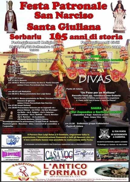 CARBONIA. Serbariu si veste a festa per celebrare San Narciso e Santa Giuliana. Una storica ricorrenza che avrà luogo sabato 21 e domenica 22 Settembre, dopo essere stata preceduta da alcuni festeggiamenti religiosi cominciati già nella giornata di ieri.