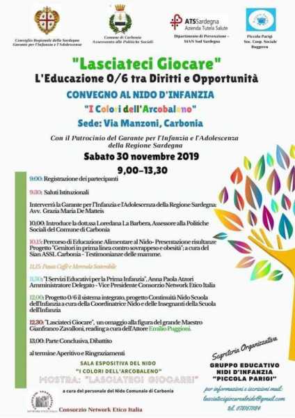 CARBONIA. Quali sono le prospettive future dell’educazione dei bambini? Come i genitori e gli educatori devono muoversi tra la tutela dei diritti e le opportunità di sviluppo dei piccini basate sul gioco e sugli aspetti ludici? Una serie di questioni che verranno dibattute sabato 30 Novembre, dalle ore 9 alle ore 13.30, in via Manzoni, sede dell’Asilo Nido Comunale “I Colori dell’Arcobaleno”. “Si tratta di un convegno che conferma la volontà del personale dell’Asilo Nido Comunale di offrire ai partecipanti nuovi spunti di riflessione e di approfondimento in merito a un tema delicato quale l’educazione dei nostri bambini, settore in cui la struttura comunale si conferma un punto d’eccellenza formato da personale altamente qualificato e costantemente aggiornato sull’evoluzione delle normative di settore e sulle best practices invalse a livello regionale e nazionale”, ha affermato l’assessore ai Servizi sociali Loredana La Barbera.