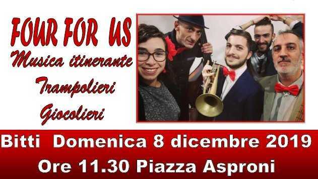 Nel giorno della chiusura si terrà uno spettacolo di musica itinerante, giocolieri e trampolieri. L’appuntamento è alle 11.30 in Piazza Asproni con l’ensemble Four For Us. L’iniziativa apre di fatto il programma degli eventi predisposto dal Comune per Natale e Capodanno, che sarà presentato ufficialmente nei prossimi giorni. Bitti si conferma centro di eccellenza nel settore dell’accoglienza in Barbagia, grazie a un’offerta variegata e qualificata: dalle bellezze culturali e archeologiche quali Romanzesu, il museo della Civiltà Pastorale e Contadina e quello Multimediale del Canto a Tenore, ai siti naturalistici del Parco regionale di Tepilora che caratterizzano il paesaggio e il territorio, al parco dei dinosauri Bittirex.