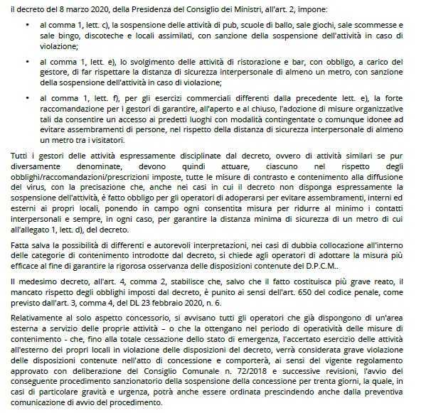 CAGLIARI. Chiusi pub, scuole di ballo, sale giochi, sale scommesse e pub, scuole di ballo, sale giochi, sale scommesse e sale bingo, discoteche e locali assimilati, con sanzione della sospensione dell'attività in caso di violazione. E regole ferree, con la garanzia di mantenimento delle distanze minime per attività di ristorazione e bar. Mentre per tutte le altre attività "la forte raccomandazione per i gestori di garantire, all'aperto e al chiuso, l'adozione di misure organizzative tali da consentire un accesso ai predetti luoghi con modalità contingentate o comunque idonee ad evitare assembramenti di persone". Sono i principi contenuti nel decreto governativo per il contrasto della diffusione del coronavirus, che il Comune di Cagliari fa suoi con una comunicazione dell'ufficio Suape, nel quale si aggiunge che chi gode di una concessione esterna potrebbe vedersela revocata seduta stante se si dovessero violare le prescrizioni.