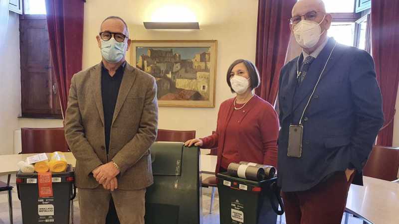 SASSARI. Dal 6 febbraio a Sassari partirà la distribuzione dei nuovi kit (mastelli, buste e composter per gli aventi diritto) per il servizio di raccolta dei rifiuti "porta a porta", organizzata dal Gestore del servizio e dall’Amministrazione comunale. Intanto giovedì 4 febbraio, a Palazzo Ducale, il Gestore del servizio ha consegnato simbolicamente un kit al sindaco Nanni Campus. Un momento che testimonia la volontà di migliorare i servizi al cittadino e incrementare l’attuale percentuale di raccolta differenziata, oggi pari a circa il 59%.