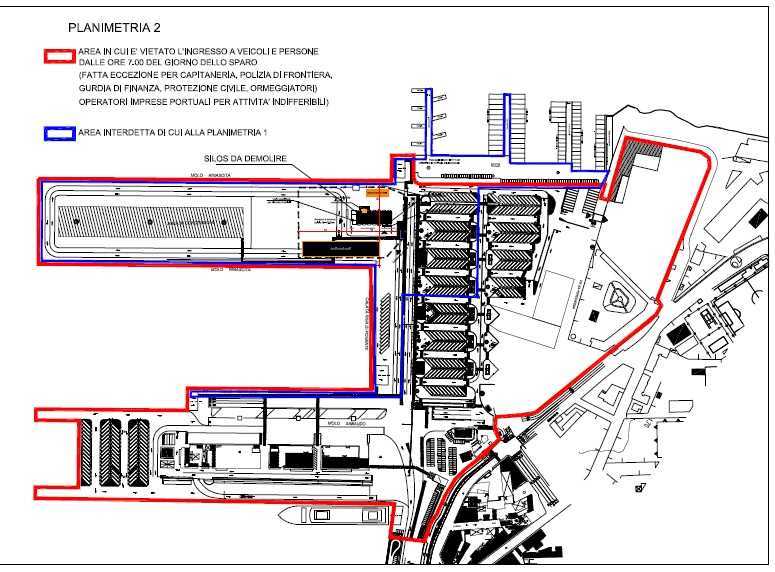La data fissata per la trasformazione dello skyline della città è fissata per il prossimo 16 marzo - o il 18, a seconda delle condizioni meteo - e per il 25, date nelle quali si procederà con il brillamento, a cura della Detom Srl. All'interno del porto sarà istituita una zona rossa di sicurezza a partire dalle 18 del 15.