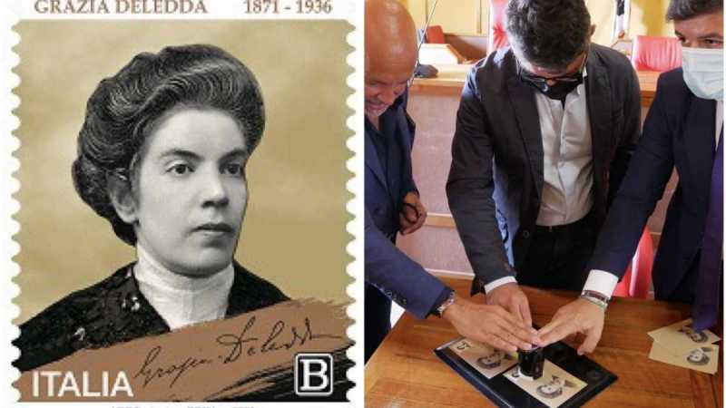 NUORO. Oggi, nell’aula consiliare del Comune di Nuoro, è stato presentato il francobollo commemorativo emesso dal Mise su proposta dell'amministrazione comunale in onore di Grazia Deledda per celebrare il 150mo anniversario della sua nascita. Alla cerimonia hanno partecipato le autorità civili e militari cittadine e i vertici provinciali di Poste italiane. Il francobollo raffigura un ritratto della scrittrice premio Nobel e, in basso, la riproduzione della sua firma autografa. Inoltre, Poste italiane ha realizzato un folder che, oltre il valore postale, contiene una busta e una cartolina filateliche con lo speciale annullo del primo giorno di emissione. A commento dell’emissione è stato realizzato il bollettino illustrativo con un articolo a firma di Rossana Dedola, scrittrice e docente dell’Istituto C.G. Jung International School Psychology di Zurigo, e di Edoardo Alberto Madesani Deledda, pronipote di Grazia Deledda.