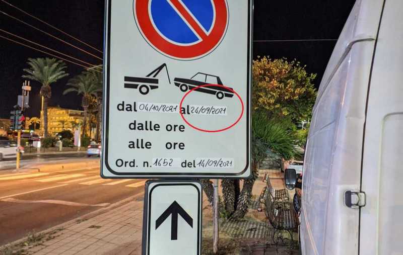 Problema: sono comparsi i cartelli di divieto di sosta. E va bene. Ma, almeno in un caso, prevedono che le auto non possano restare dal 4 ottobre - data di inizio dei lavori - al 24 settembre. Del 2021. Forse si prevede una velocità di intervento tale per cui si tornerà indietro nel tempo. O forse, più probabile, qualche operaio ha sbagliato: la data presunta di fine lavori è a dicembre, vigilia di Natale.