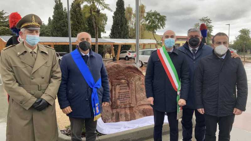 TISSI. Ieri mattina, è stato inaugurato a Tissi il Piazzale antistante l'Ex-Ma intitolato al Milite Ignoto, nell'anno della ricorrenza del centenario dalla sua traslazione. Un riconoscimento onorario a coloro che si sono sacrificati per il bene comune e la libertà. L’evento commemorativo si è svolto alla presenza delle autorità militari religiose e civili, alle associazioni combattentistiche e d’arma, tutti i corpi dello stato, al presidente del Consiglio Regionale On. Michele Pais, all'assessore agli enti locali On. Quirico Sanna in rappresentanza del Presidente della Regione Sardegna, al Commissario straordinario della Provincia di Sassari Pietrino Fois e a tutti i cittadini ed alunni delle scuole di Tissi. “Per noi Tissesi – ha rimarcato il sindaco di Tissi Gian Maria Budroni- quest’oggi è un giorno importante per la sua solennità. In virtù del suo valore storico, abbiamo voluto renderla ancora più solenne con l'inaugurazione di un’opera che si aggiunge alle altre già realizzate ed a
