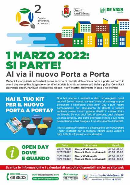 Iniziata nei mesi scorsi, la distribuzione porta a porta dei nuovi kit di raccolta da parte della De Vizia Transfer ha raggiunto ormai il 65% della popolazione quartese su un totale di circa 33mila utenze regolarmente censite: risultano distribuiti al 31 gennaio 19.750 kit. Manca ancora all’appello poco più di un terzo delle utenze, che non sono state trovate in casa né hanno risposto all’avviso di riconsegna regolarmente recapitato durante il porta a porta.