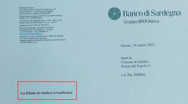 CAGLIARI. "La filiale di Oniferi si trasferisce". La laconica comunicazione, a firma del direttore generale Banco di Sardegna, è stata consegnata alla sindaca di Oniferi Stefania Piras: l'istituto di credito chiude, in realtà. Lì e in altri sedici comuni della Sardegna. E per la prima cittadina le parole sono importanti. Tanto che si sfoga: "Siete codardi nelle azioni e nelle parole", sostiene rivolgendosi ai vertici del Banco.