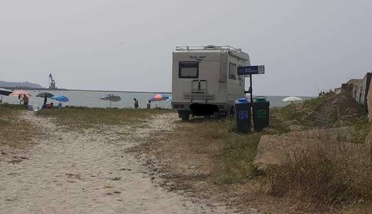 CAGLIARI. Questa mattina il personale della Polizia Locale di Cagliari impegnato nel controllo del litorale ha sorpreso un camper parcheggiato sull'arenile della spiaggetta del villaggio dei pescatori di Giorgino.