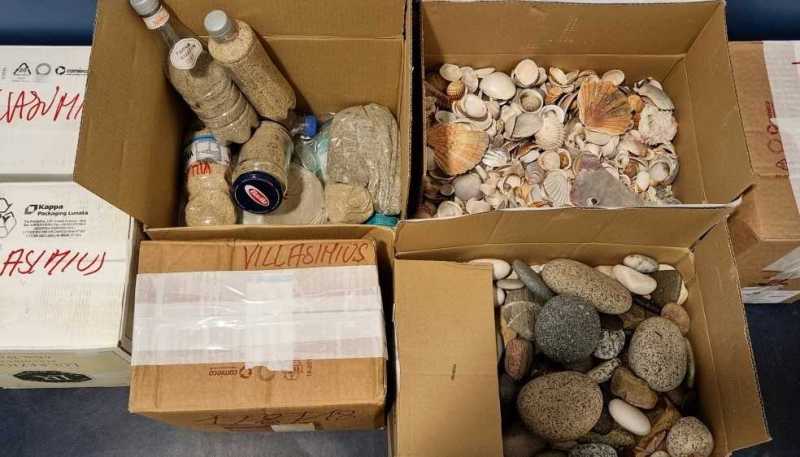 CAGLIARI. Ciottoli, conchiglie, sabbia in bottiglia: 250 chili di "pezzi" di Villasimius che stanno per tornare a casa. Tutto sequestrato in aeroporto, a turisti che hanno provato a portare via un ricordo, illegale e frutto della mancanza di senso civico, della loro vacanza in Sardegna.
