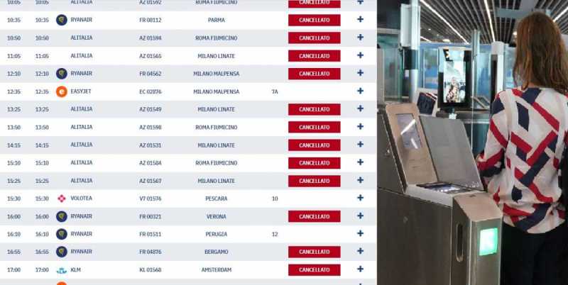 I tabelloni dell'aeroporto di Cagliari sono un "cimitero" di voli cancellati. Si contano 18 collegamenti annullati in partenza e altrettanti tra gli arrivi.