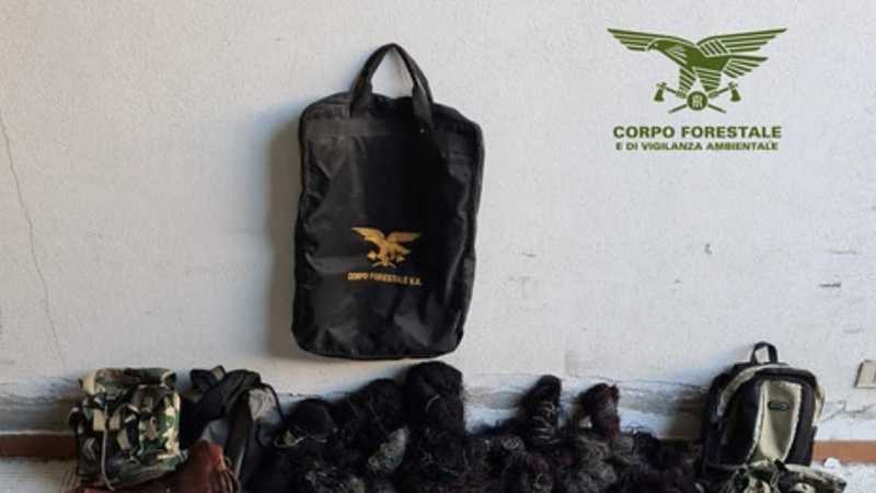 La Forestale ha sequestrato inoltre lacci per cinghiali, trappole e di reti per l’uccellagione.