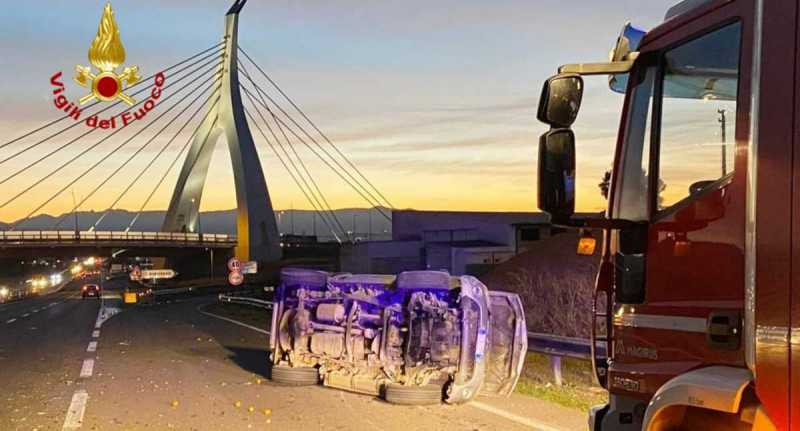 MONSERRATO. Auto ribaltata all'alba di oggi, intorno alle 6.30, sulla strada statale 554 in prossimità dello svincolo per il Policlinico poco prima del ponte Emanuela Loi, a Monserrato. Il conducente ha perso il controllo del mezzo finendo sul bordo della carreggiata e schiantandosi contro un muretto di cemento, poi si è ribaltato. Le cause sono ancora in fase di accertamento. I Vigili del Fuoco, arrivati sul posto, hanno provveduto alla messa in sicurezza del veicolo e della sede stradale presidiando sul posto sino all'arrivo degli agenti della Polizia Locale di Monserrato che di competenza dovranno effettuare gli accertamenti e i rilievi di legge. Il conducente è stato trasportato in ospedale con un codice giallo dall'ambulanza del 118.