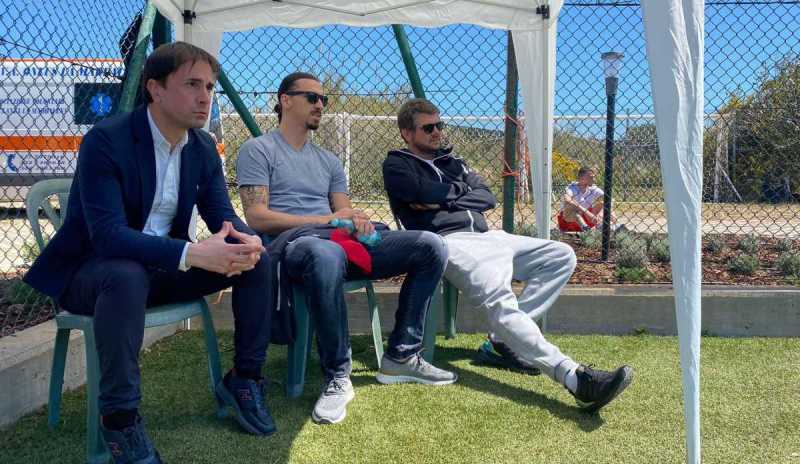 "Oggi mi godo questa splendida giornata di sole guardando Ilva - Hammarby insieme a Zlatan Ibrahimović", scrive il sindaco di La Maddalena Fabio Lai, che pubblica una foto insieme all'attaccante rossonero, "Ovviamente però tifando due squadre diverse".
