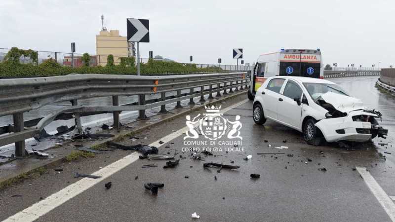 CAGLIARI. Ha perso il controllo dell'auto, una Grande Punto bianca, probabilmente anche a causa dell'asfalto bagnato dalle abbondanti piogge, così una donna di 40 anni si è schiantata violentemente contro il guardrail.