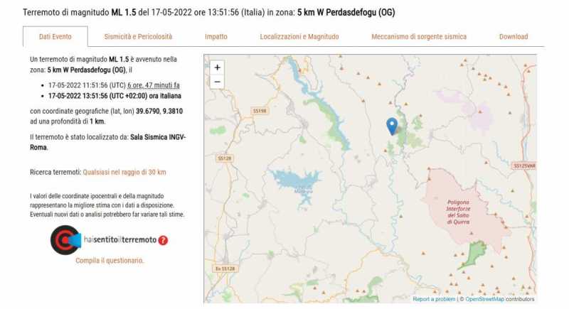 CAGLIARI. Tecnicamente è classificato come terremoto, ma lo hanno rilevato solo le apparecchiature della sala dell'istituto dei geologia e vulcanologia di Roma: la scossa di magnitudo 1,5 (bassissima) è stata registrata alle 13,51 nel territorio di Perdasdefogu, a cinque chilometri dal centro abitato. L'epicentro è stato localizzato alla profondità di un chilometro.