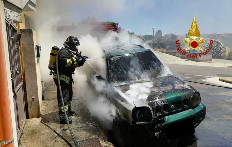 SINNAI. Un'auto in sosta ha preso fuoco a Sinnai intorno alle 12,30. Sul posto sono intervenuti i vigili del fuoco con una squadra di pronto intervento "2A" della sede centrale del Comando con un'APS.