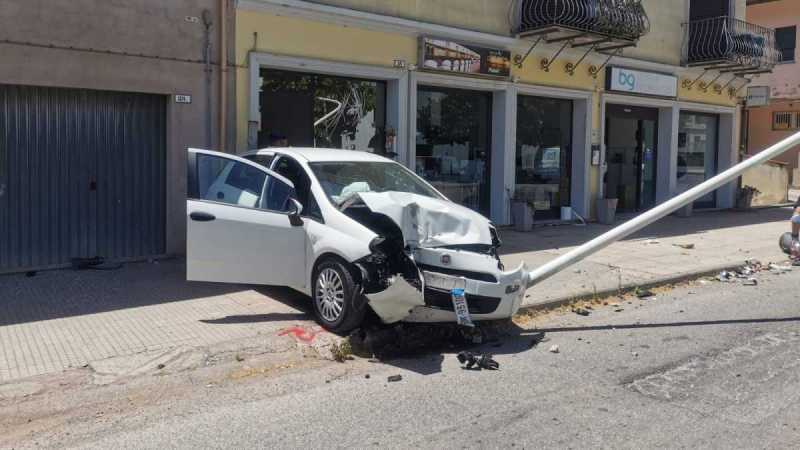 SANLURI. Brutto incidente questa mattina in via Carlo Felice a Sanluri: una Punto, per cause ancora da accertare, è andata a sbattere ad alta velocità contro un palo della luce, che ne ha fermato la corsa evitando che il veicolo sfondasse la vetrina di un negozio lì accanto.