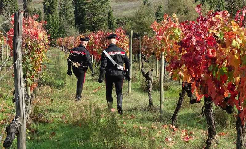 I militari hanno sorpreso l'ottantunenne forestiero che aveva appena tagliato con delle forbici da potatura e sottratto 17 kg di uva.