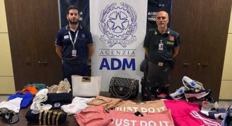 CAGLIARI. Blitz dei funzionari dell'Ufficio delle Accise, Dogane e Monopoli (Adm) e i militari della Guardia di Finanza hanno sequestrato in aeroporto a Cagliari. Sono stati sequestrati 23 capi di abbigliamento contraffatto, tra scarpe, tute da ginnastica, borsette, maglie, orologi, con false etichette di noti marchi sportivi e di lusso ritrovati dentro la valigia di una passeggera in arrivo dal Senegal.