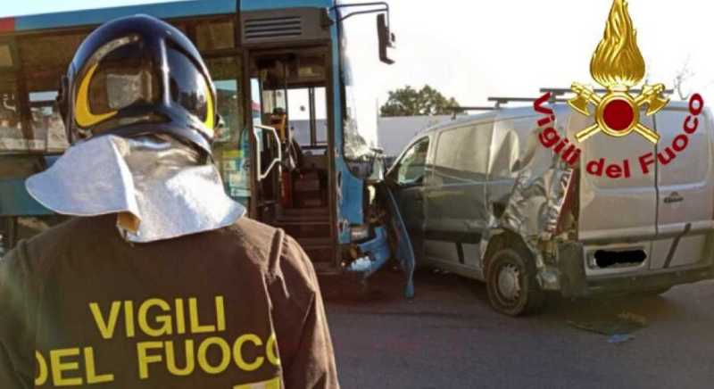 Sul posto sono intervenuti i Vigili del fuoco e i carabinieri. Secondo le prime ricostruzioni l'incidente sarebbe stato causato da un guasto meccanico ai freni dell'autobus.