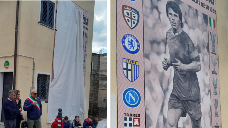 OLIENA. Sui palazzi di Napoli campeggiano i ritratti di Maradona, a Oliena da ieri c'è un gigantesco murale per Gianfranco Zola. Si trova di fronte al municipio dello stesso paese che ha dato i natali a 'Magic box', è opera dell'artista Luigi Columbu, ed è stato inaugurato alla presenza del sindaco Bastiano Congiu e fa parte del progetto scolastico in lingua sarda 'Xirchendi Zola' che punta a raccontare il campione sardo. Nell'immagine si vede Zola in azione tra le maglie delle squadre in cui ha militato e i trofei vinti.