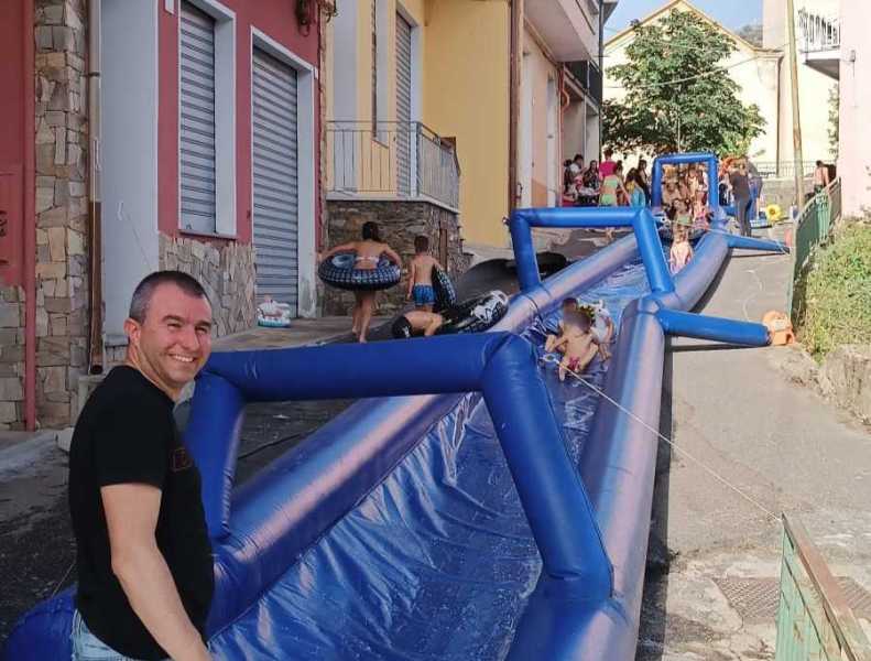 DESULO. A novecento metri sul livello del mare il caldo record di questi giorni si combatte con uno scivolo gonfiabile. Succede a Desulo, per la gioia dei bambini del paese che possono trovare divertimento e un po' di refrigerio contro le alte temperature di questi giorni.