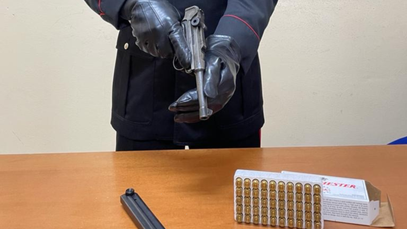TORPÈ. Un 53enne a Torpè è stato trovato in possesso di una pistola da guerra, una luger P08 calibro 9, munita di caricatore e perfettamente funzionante, insieme a 50 proiettili.