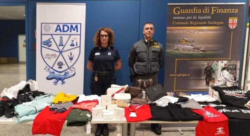 I Funzionari dell’Ufficio delle Dogane di Cagliari( Adm) insieme ai militari della Guardia di Finanza in servizio presso lo scalo aeroportuale hanno sequestrato 36 pezzi tra capi di abbigliamento e accessori contraffatti dei marchi Nike, Versace, Hugo Boss, Adidas, Stone Island, Chanel, Dior, Louis Vuitton, Calvin Klein Jeans, Diesel, Burberry, Gucci, U.S. Polo, Balenciaga.