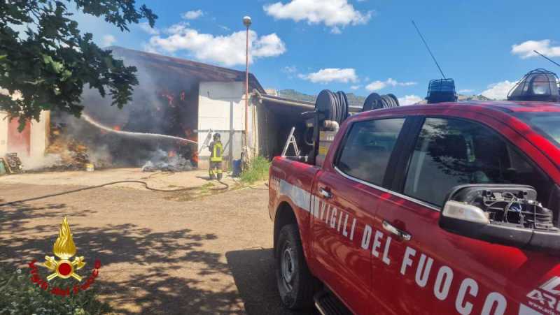 SILANUS. E' un brutto incendio quello che sta coinvolgendo un'azienda nelle campagne di Silanus: secondo le prime notizie si apprende che ci sarebbero circa 600 balle di fieno in fiamme e ulteriori 80 rotoballe. I vigili del fuoco fanno sapere di essere intervenuti alle 11,10, poco dopo le segnalazioni del rogo, con la squadra 7A di Macomer. A supporto nelle operazioni di spegnimento sono state inviate due autobotti da Macomer e dalla sede centrale di Nuoro.