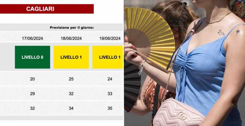CAGLIARI. Il Ministero della Salute ha diramato un'allerta di livello 1 secondo il sistema di allarme per la prevenzione degli effetti delle ondate di calore sulla salute, per le giornate di martedì 18 e mercoledì 19 giugno 2024 a Cagliari.