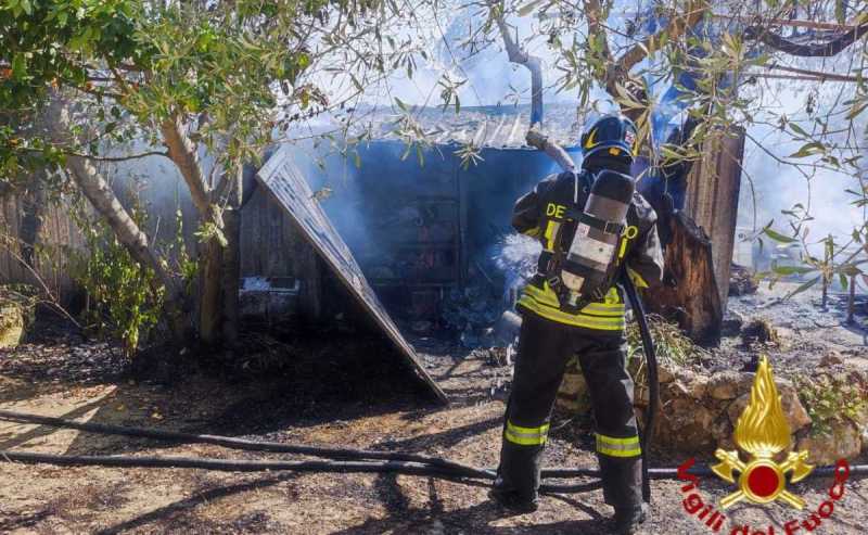 SASSARI. Esplosioni e fumata nera questo pomeriggio a Sassari, vicino a un'abitazione in zona Piandanna, a poca distanza dall'Ufficio delle entrate. Sul posto è arrivata una squadra dei vigili del fuoco dalla Sede Centrale: le fiamme stavano interessando un deposito attrezzi agricoli nel quale si trovavano, tra le altre cose, anche tre bombole di gpl. Fortunatamente non si è registrato nessun danno all'abitazione adiacente né feriti.