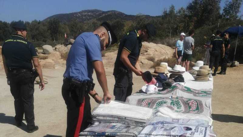 DOMUS DE MARIA. Sono stati sequestrati circa un migliaio di prodotti, tra indumenti e articoli da spiaggia durante le operazioni che hanno visto impegnati carabinieri di Domus De Maria e Capoterra, oltre alla guardia di finanza di Sarroch e polizia locale.