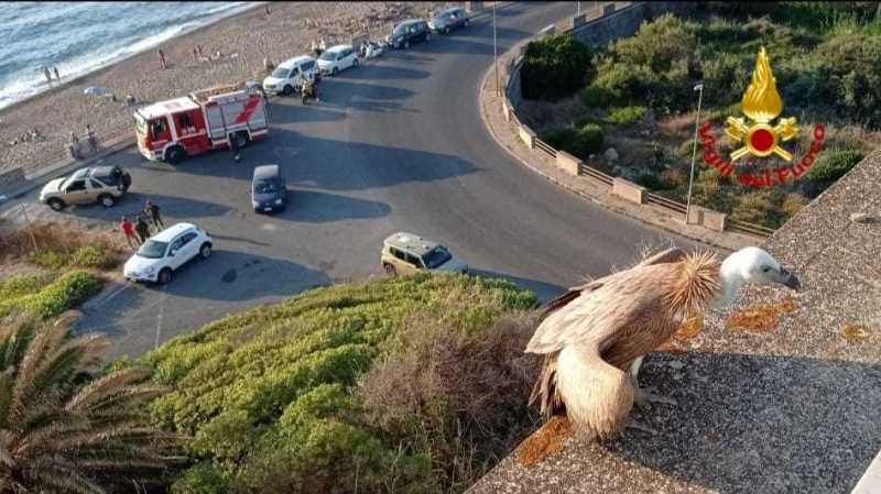 BOSA. Un giovane grifone selvatico in difficoltà è stato soccorso ieri dai vigili del fuoco a Bosa. L'animale era fortemente disidratato e stremato e si trovava immobile sul tetto dell’ex Hotel “Turas”.