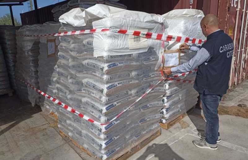 I carabinieri Forestali del Nucleo Cites hanno individuato alcuni sacchi di pellet in cui l'etichetta non riportava le informazioni necessarie in lingua italiana.