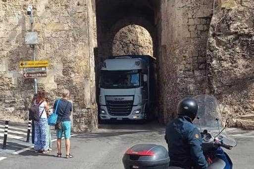 CAGLIARI. Il conducente di un tir è rimasto incastrato nella porta di S’Avanzada, nel quartiere Castello, a due passi da Porta Cristina. È successo nel primo pomeriggio di ieri a Cagliari.