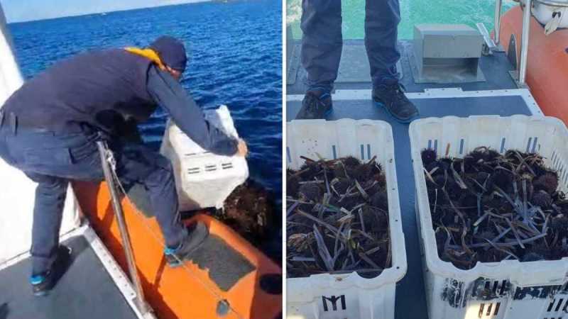 I ricci, tutti ancora vivi, sono stati subito rigettati in mare e il pescatore è stato multato con una sanzione da 1.000 euro.